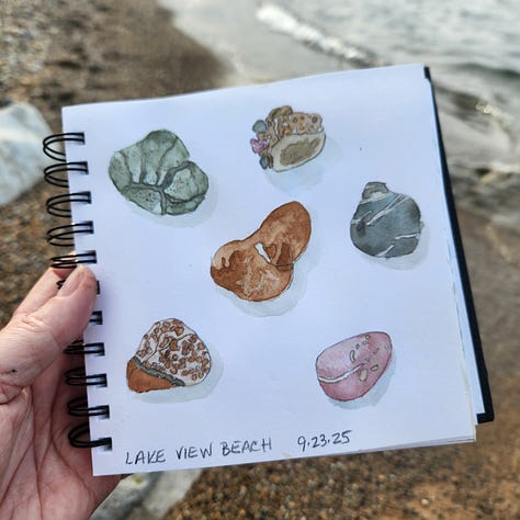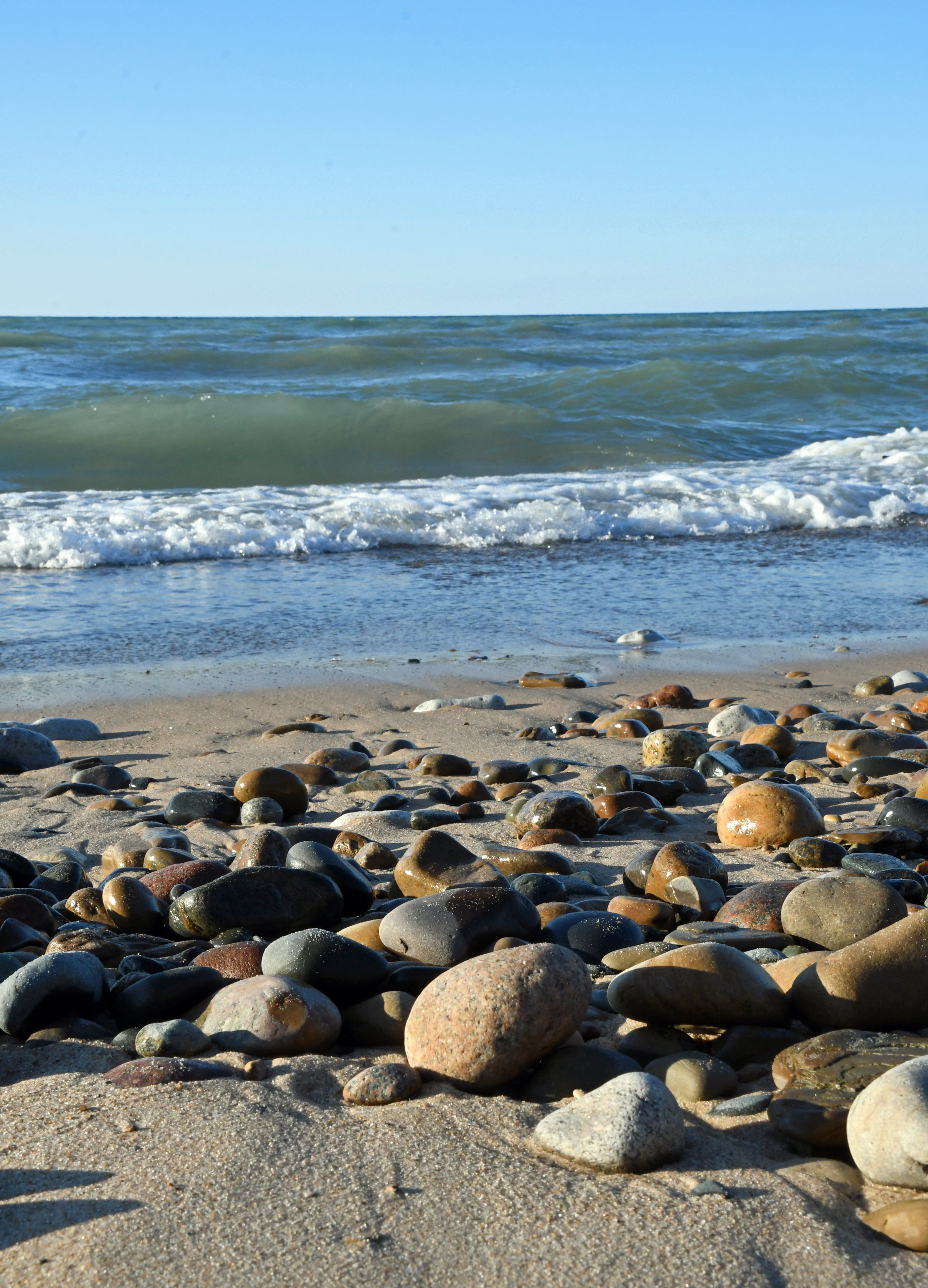 Any shore is alive with possibility, a shifting boundary shaped by wind, water, and time. Each wave redraws the edge, erasing and remaking patterns in the sand. I was especially taken with the stones I found washed up there, smoothed by years of tumbling, carrying the memories of ancient forces and transformations.