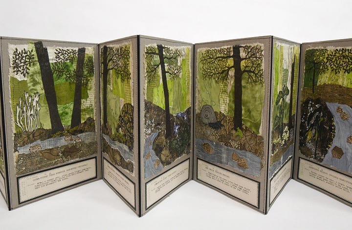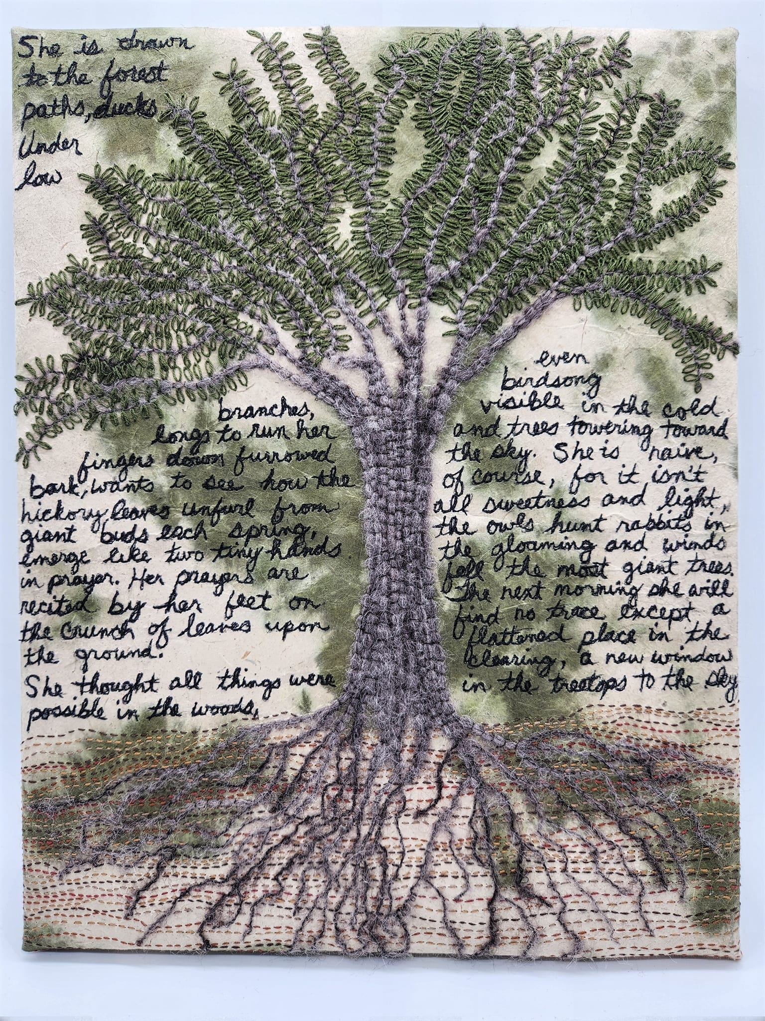 When my health began to make walking in the woods difficult, and I walked there less and less, my work shifted to a liminal space between walking in the woods and remembering walking there. In this in-between, truth became fluid—details blurred and emotion reshaped what I had experienced.